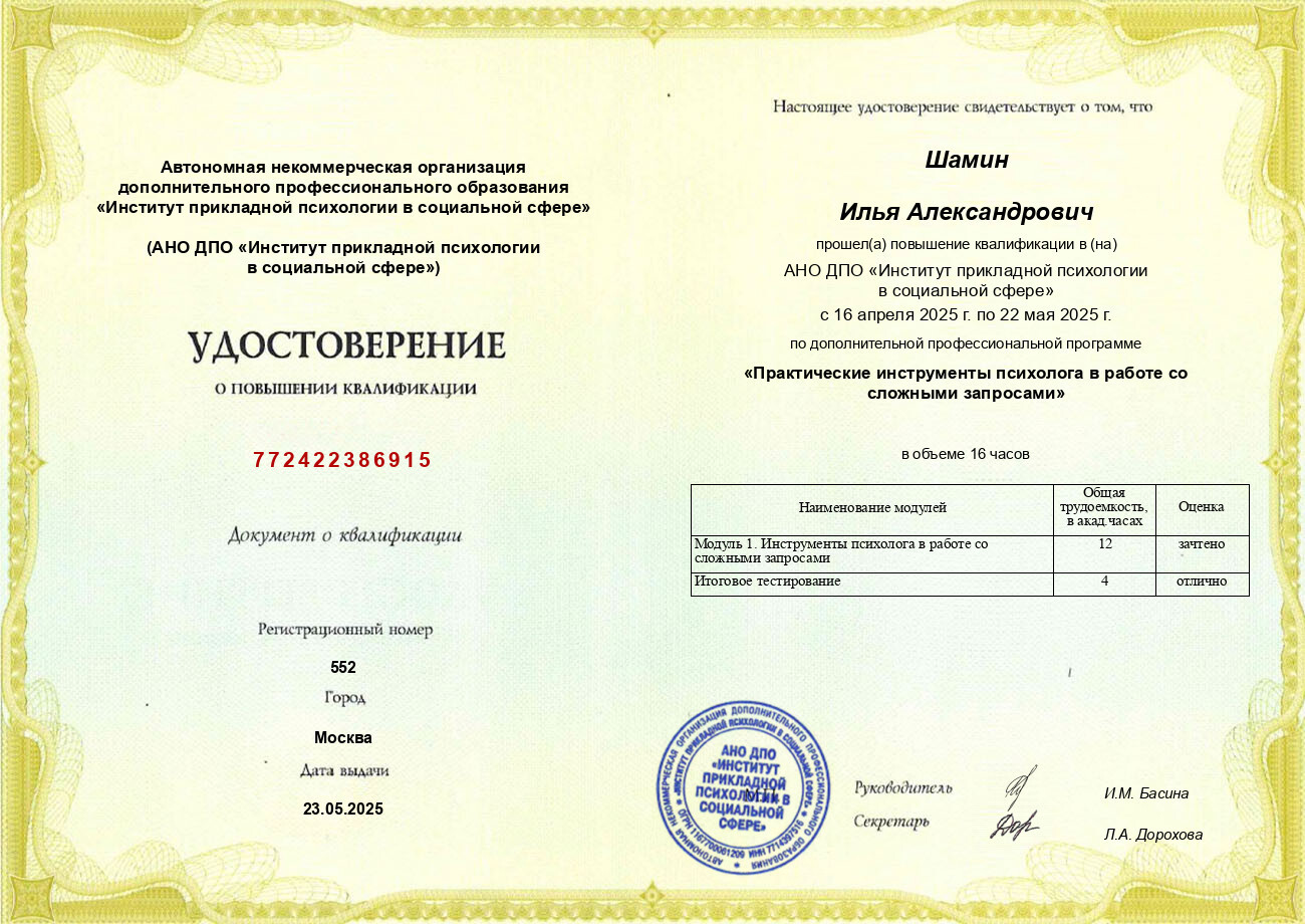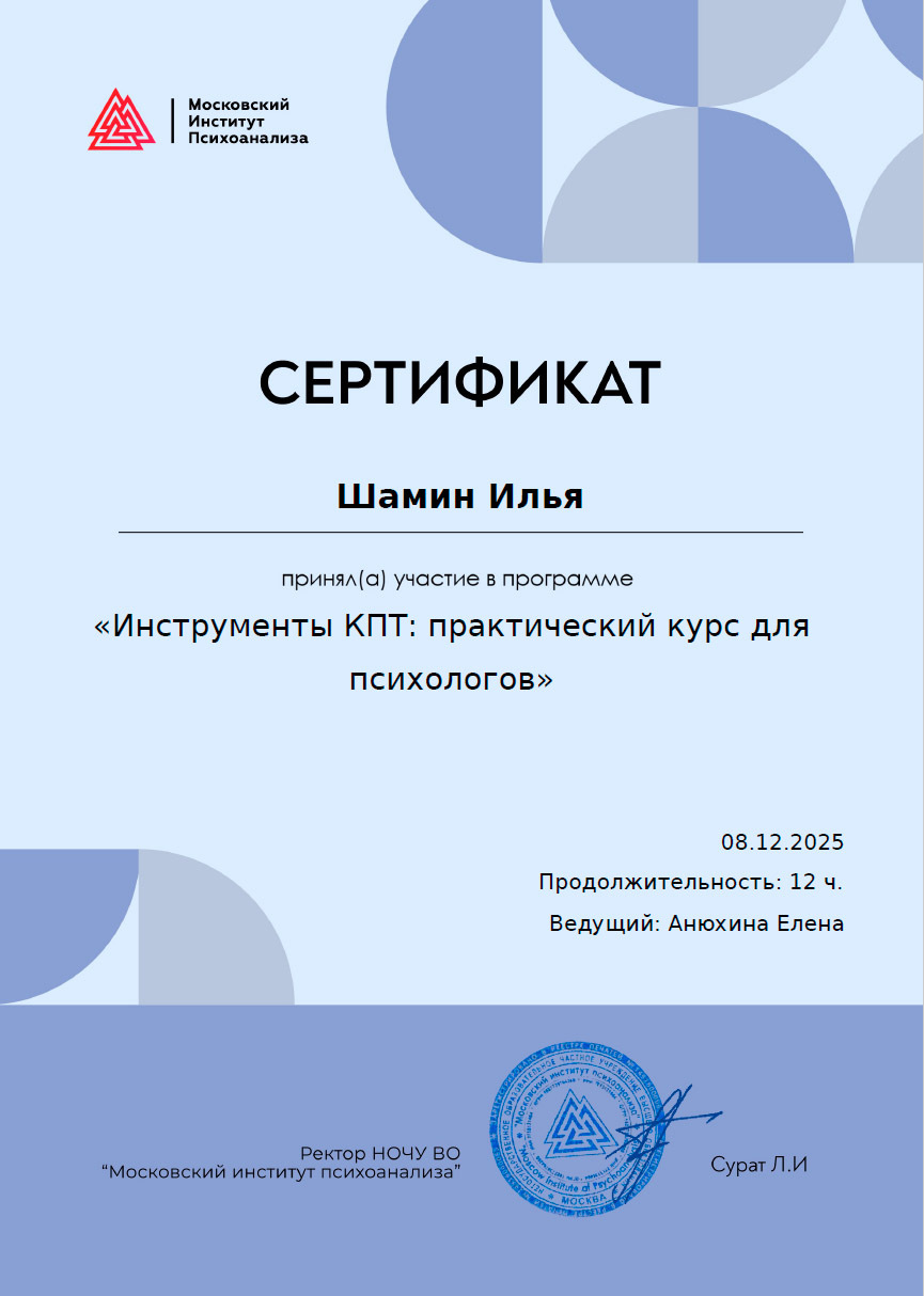 От меня вы точно получите знания, инструменты и техники, а также новые возможности вашего мышления. Я работаю с любым запросом, но у меня есть и специализация. Смотрите ниже.